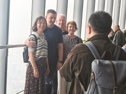 昨天上午10时许,联程专线迎来首批体验者——一支来自西班牙的45人旅行团。这一VIP旅行团中不少团员旅游经验丰富,曾到访过世界上多座高塔建筑。在上海中心118层观光厅,陆家嘴的摩天大楼与外滩万国建筑博览群同框的景象,令西班牙游客安吉拉·马天尼赞不绝口:“这些大楼太令人震撼了!我很喜欢上海,这里的建筑、食物都很棒,城市比照片里看到的还要壮观。”