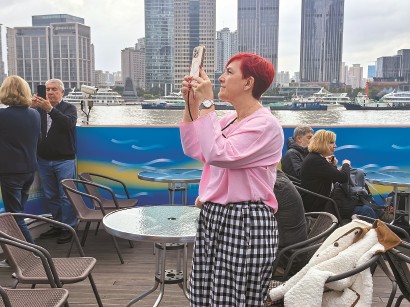 西班牙游客乘浦江游船,欣赏两岸风景。 资料图片