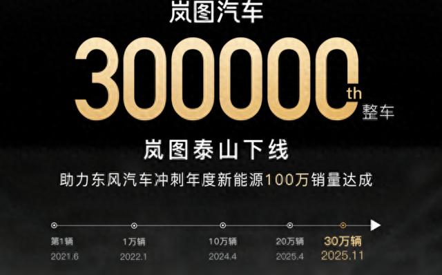 从第1辆到1万辆,用时7个月;从1万辆到10万辆,用时15个月;从10万辆到20万辆,用时12个月;从20万辆到30万辆,仅用时7个月。这是东风汽车集团有限公司(以下简称“东风汽车”)岚图汽车在关键节点交出的销量跃升时间表。